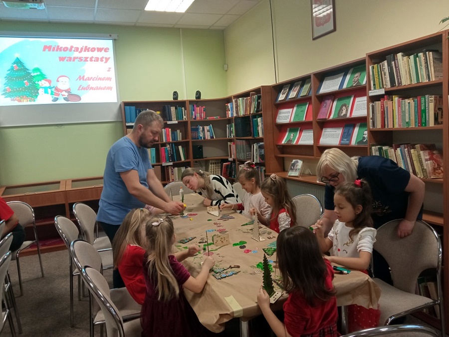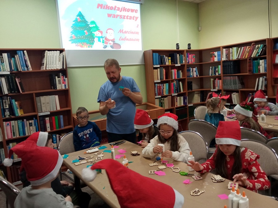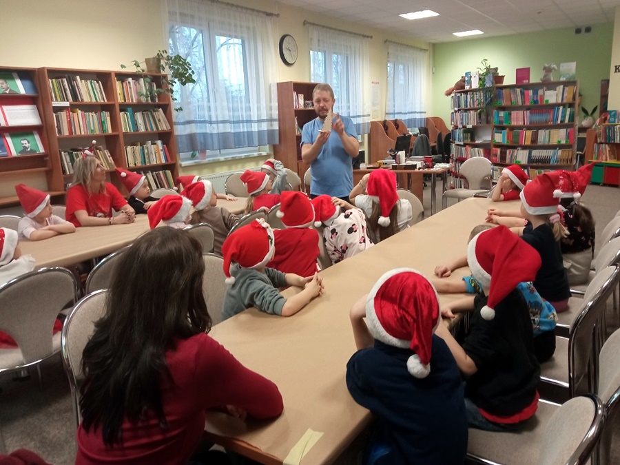 Warsztaty przebiegły w radosnej atmosferze, pełnej mikołajkowej magii. Dziękujemy Marcinowi Lubnauowi za inspirujące spotkanie, a grupom przedszkolnym i pierwszoklasistom za aktywny udział i mnóstwo pozytywnej energii.